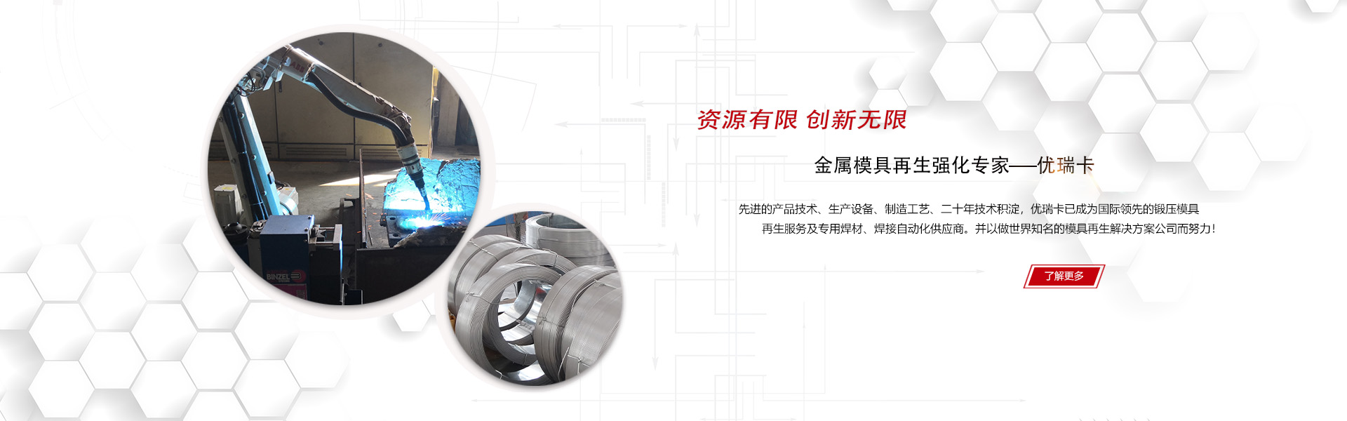 優(yōu)瑞卡是國內(nèi)知名的鍛造模具再生服務(wù)及專用焊材、模具焊接系統(tǒng)供應(yīng)商,我們吸收引用美國、德國、日本等國的先進(jìn)模具焊修經(jīng)驗(yàn),結(jié)合國內(nèi)企業(yè)情況,不斷創(chuàng)新并研發(fā)了更加有效、更加成熟、更易操作的模具再生技術(shù),為廣大企業(yè)在鍛造、沖壓、壓鑄、塑料模具及機(jī)械部件維修方面提供優(yōu)質(zhì)的焊接材料、自動(dòng)化焊接系統(tǒng)、模具加工用刀具和完善的再生修復(fù)服務(wù)。優(yōu)瑞卡正逐漸成為國內(nèi)外鍛造與沖壓企業(yè)創(chuàng)造更大利潤、提升核心競爭力不可或缺的重要推動(dòng)力!